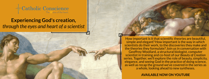 How important is it that scientific theories are beautiful, simple and elegant? How important is the way in which scientists do their work, to the discoveries they make and the theories they formulate? I sat down in conversation with Geoffrey Woollard, a structural biologist, computer scientist in-training and co-host of our Beauty of Creation series. Together, we discussed the role of beauty, simplicity, elegance, and seeing God in the practice of doing science, as well as recap the ground we’ve covered in the series as a whole, looking ahead to new syntheses. This was the final webinar in the Beauty of Creation series.